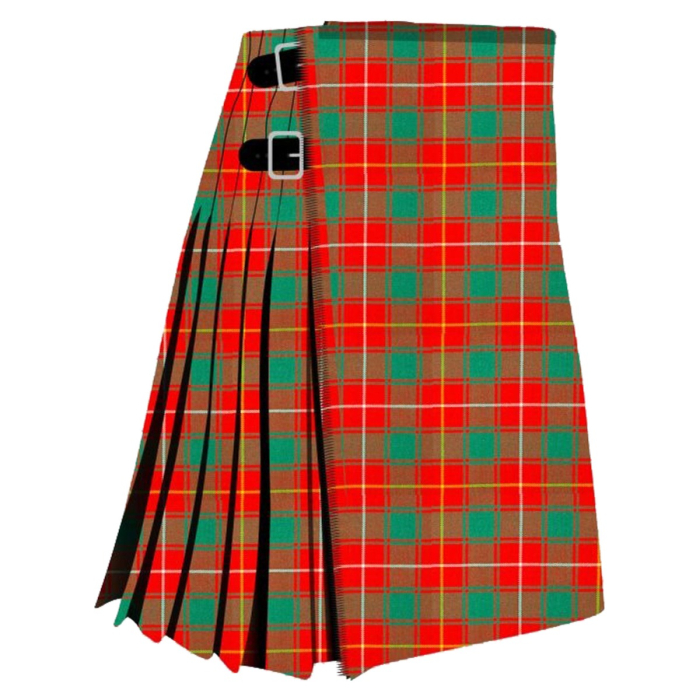 The MacPhie Ancient tartan reflects centuries of Scottish clan identity and pride. Traditional knife pleats preserve authenticity while giving a structured and elegant appearance.