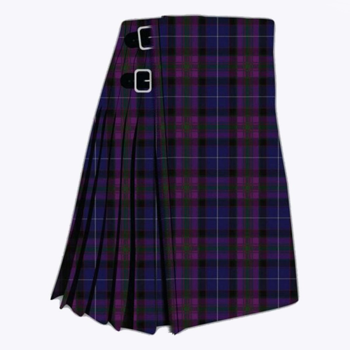 Immerse yourself in the rich traditions of Scottish Highland dress with the Western Isles Tartan Kilt. Inspired by the rugged beauty and cultural heritage of the Western Isles — the famed archipelago off Scotland’s west coast — this kilt showcases a distinctive tartan pattern with bold stripes of navy blue, purple, green, white, and black arranged in a classic plaid design. The pattern evokes the dramatic landscapes and historic Gaelic culture of the Hebrides, making this kilt both a meaningful and stylish piece of attire.